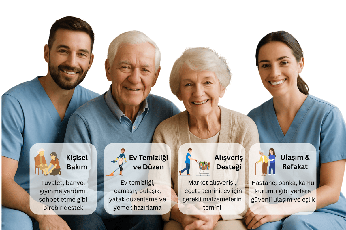 Tuvalet, banyo, giyinme yardımı, sohbet etme gibi birebir destek